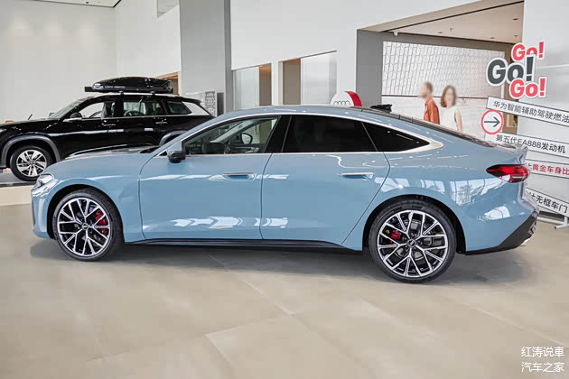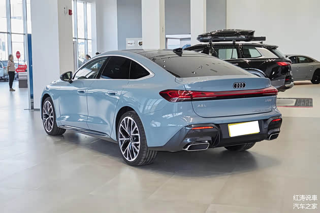 上汽奥迪A5L Sportback延续海外版A5的溜背式车顶造型,采用无框车门和掀背式尾门设计,这方面与一汽奥迪A5L的传统三厢轿车造型有着明显差异,大号轮毂搭配暗红色刹车卡钳,还有小鸭尾、运动包围、双边两出排气等元素,营造出很强的轿跑运动感,而红色贯穿式尾灯内部构造精致,同样支持多种灯语切换和可发光的车标。