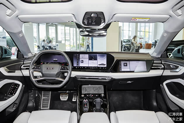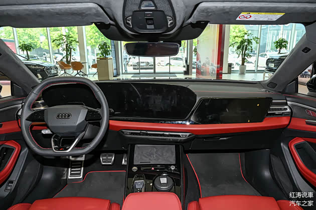 内饰方面,采用奥迪虚拟座舱设计,配备11.9英寸液晶仪表、14.5英寸中控屏,还将标配10.9英寸副驾娱乐屏,而电子滑块换挡机构小巧,两驱版是四幅多功能方向盘,深浅双拼配色营造出豪华和科技感,四驱版则是三幅多功能方向盘,红色内饰更能唤起驾驶欲望。
