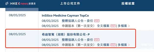 根据港交所5月8日披露,希迪智驾科技股份有限公司(以下简称“希迪智驾”)向港交所主板递交上市申请,中金公司、中信建投国际、中国平安资本(香港)为联席保荐人。该公司曾于2024年11月7日向港交所递表。