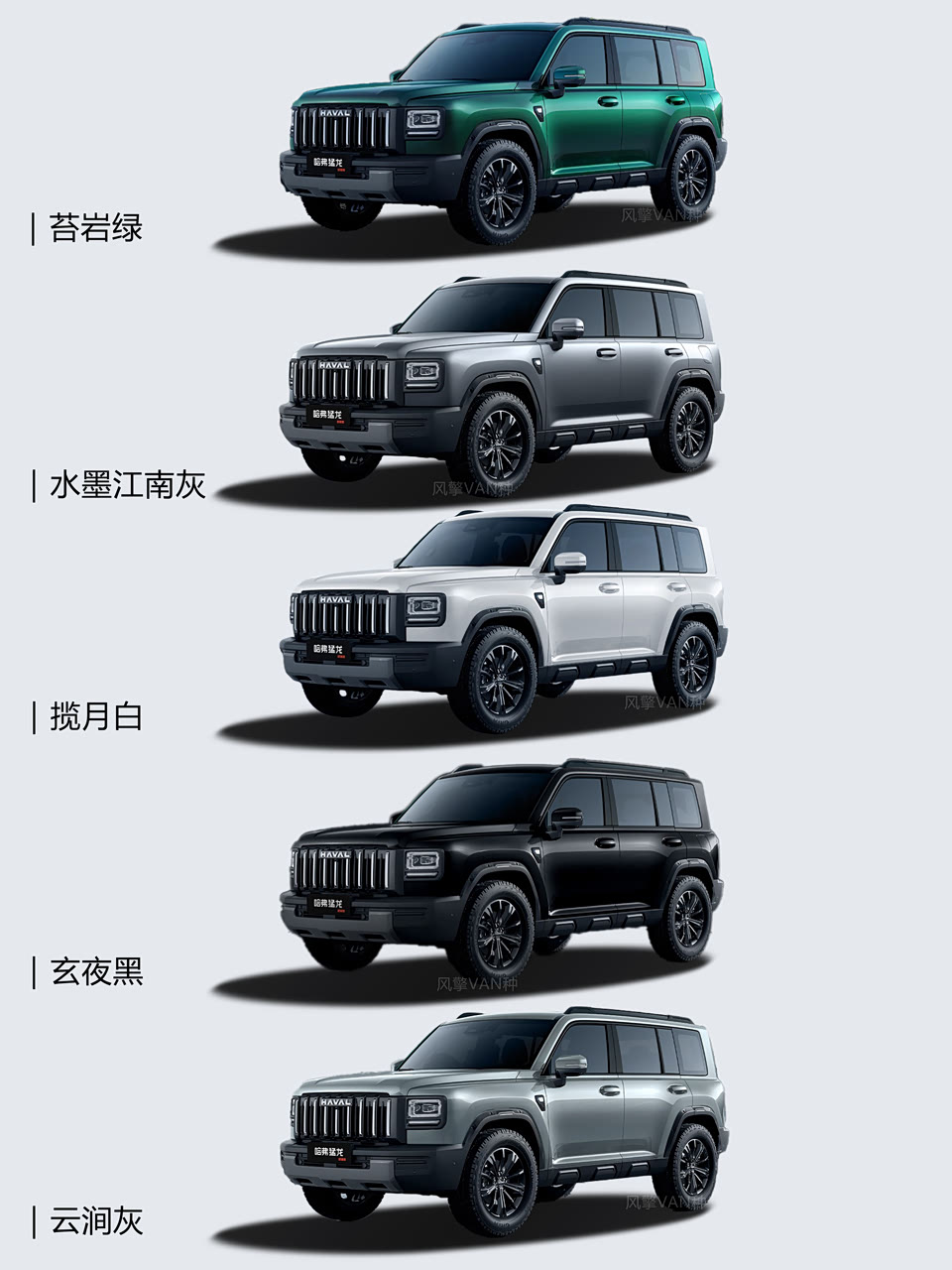 哈弗SUV日前公布了哈弗猛龙燃油版的外观配色方案,猛龙燃油版提供苔岩绿、玄夜黑、水墨江南灰、云涧灰、揽月白共5种外观配色,相较在售的哈弗猛龙PHEV多了一款苔岩绿配色的车漆。 哈弗猛龙燃油版官图于近日迎来发布,燃油版车型与PHEV版在外观方面整体保持一致,不同之处在于燃油版车型前脸采用直瀑式格栅取代了PHEV的横向格栅造型,同时HAVAL标识尺寸缩小,头灯则改用方形设计。 车尾部分,哈弗猛龙燃油版的尾灯采用纵列矩形布局,内部设计有密集的菱形晶体,点亮状态下可呈现纵向渐变效果。