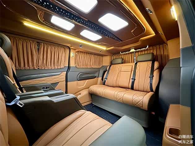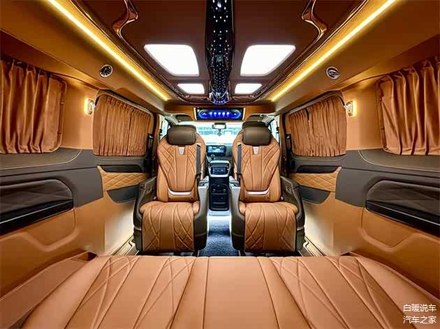 NAPPA真皮与拉帕头层小牛皮如丝绸般包裹每一寸空间,法式双缝线工艺勾勒出精致纹理。驾驶舱内,NAPPA头层牛皮与碳纤维交织,搭配大理石纹岩板地板,宛如一座移动的艺术殿堂。2+2+3的七座布局,第二排超级豪华航空座椅如同云端王座,支持通风、加热、按摩及360度旋转,让每一次乘坐都如沐春风。第三排座椅可一键变身电动三连沙发床或独立座24寸智能液晶中控屏如一块悬浮的魔镜,集成无线网络、手机互联等功能。流媒体后视镜、多色幻彩氛围灯与定制天幕顶灯交相辉映,而WCAR 9.1声道立体环绕音响则让车内化身私人音乐厅。