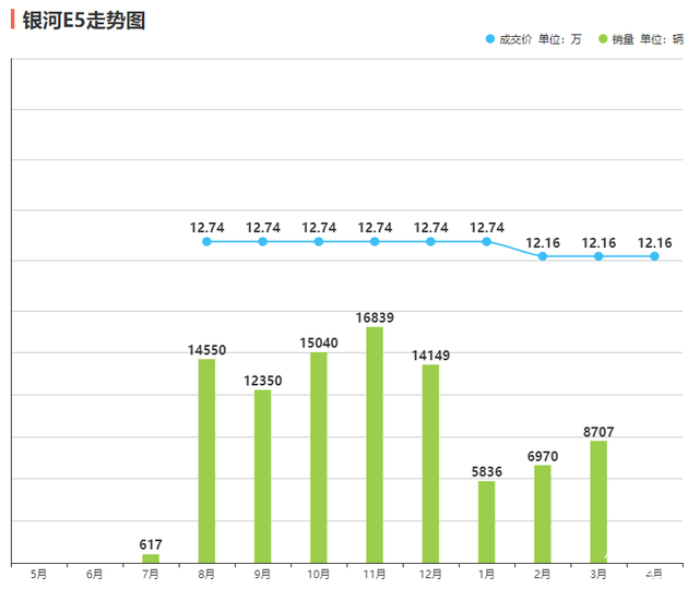 作为吉利终端打造的新能源品牌,吉利银河是一个以低价格和性价比为核心卖点的品牌,从销量数据来看,其所面临的销量压力并不算小,星舰7虽然今年前3个月总销量达到30465辆,但在2月和3月,其月销量均为超过8000辆,且因为它的上市,价格更高、尺寸接近的银河L7出现销量大幅下跌,前三个月仅售出10538辆,而其去年12月的月销量都有8300辆。价格门槛下探至7.98万元的银河L6,前3个总销量为13623辆,相比比亚迪秦PLUS DM-i的41140辆差距不小;纯电紧凑型SUV银河E5,前3个月总销量仅为21513辆,相比去年8-12月的月销量均在1.2万辆以上下滑非常明显。