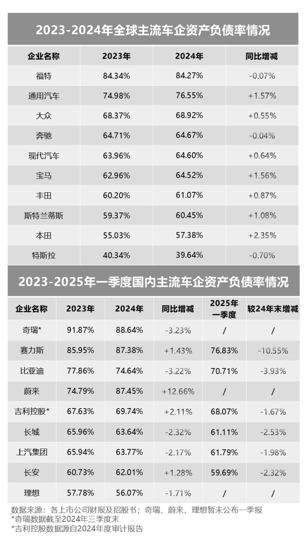 近期,全球上市车企陆续公布2024年报和2025一季报,资产负债率成为关注焦点。总负债与企业规模和营收相关,受重资产、长周期特性影响,汽车行业普遍负债较高,国际车企与中国头部车企多在60%以上。不过趋势分化明显,国内车企负债率普遍回落,其中比亚迪半年内下降近7个百分点至70.7%,有望年内降至“6”字头,财务韧性逐步显现。