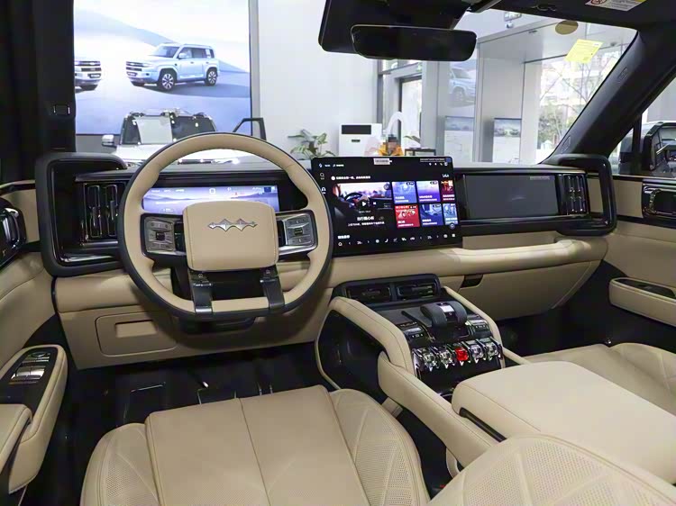 动力系统方面,全系标配1.5T插电混动架构,内燃机最大功率143kW,前后双电机分别输出200kW和285kW,综合功率达505kW。31.8kWh电池组支持CLTC工况125km纯电续航,V2L/V2V放电功能则延续新能源越野车的装备特色。需要指出的是,该动力参数与现款车型保持一致,改款重点主要集中于智能化升级。