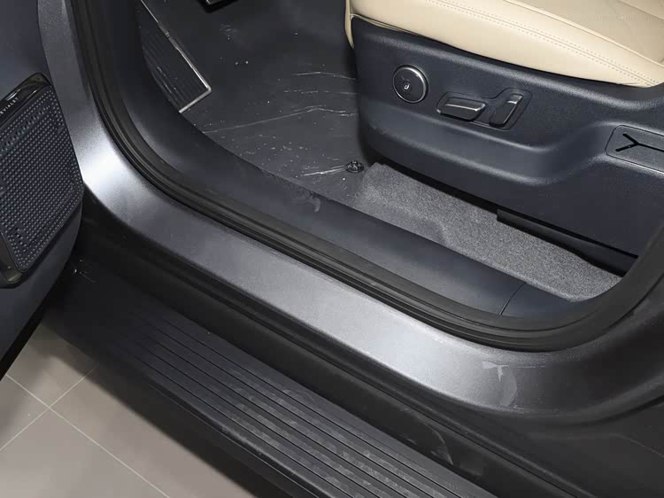 内饰布局延续品牌标志性设计语言,"超级锁扣"造型的中控台与三屏交互系统(12.3英寸仪表+15.6英寸中控+12.3英寸副驾屏)构成数字座舱主体。新增的浅滩绿、日蚀蓝等内饰配色方案,试图在硬派风格中融入时尚元素。不过物理拉手的保留,暗示着该车型仍兼顾传统越野使用场景。