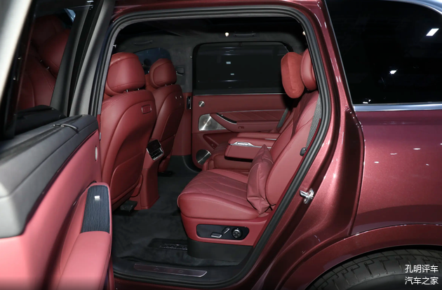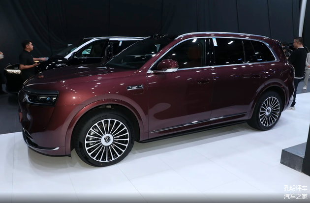 特别有意思的是这款车型基本上继承了问界M9的外观造型设计基因,车头前脸辨识度非常高,特别是两侧的灯光部分都有向下的延伸,高级感确实比较明显。而车身侧面看毕竟有大型身材的支撑,实际上也是偏向于沉稳大气的类型,再加上密集幅条的轮毂,这款车的气场压迫感也不错。