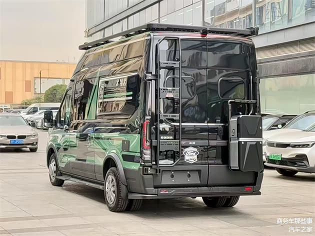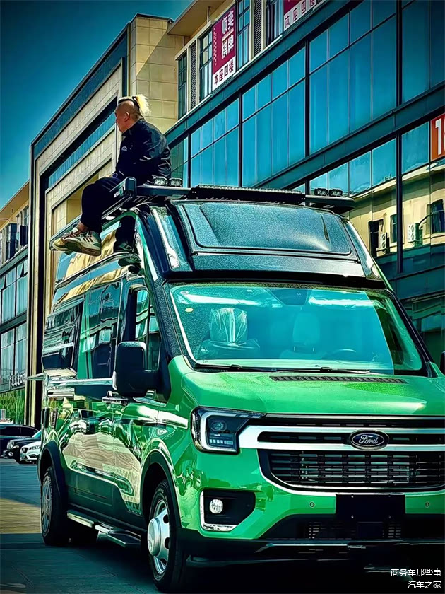 大家好,商务车解说我是鲁秋君,今天我们来介绍一台福特t8的大一点的b型房车。这台房车也是我们的房车大厂奇瑞瑞弗工厂所出来的一款当家花旦车型,单从外观来看,颜值就很高,绿色的外观给它增加的非常漂亮的颜色,就生机和活力。那福特t8这个底盘是发行到现在一直都特别的受欢迎。车的尺寸也比较的大,长度在5998,宽度在2164,高度在2950,搭载的是2.3t柴油的发动机,驾驶感受相当不错,esp的电子稳定系统,电子助力多功能方向盘等等等等,而且目前还可以选装四驱的底盘。