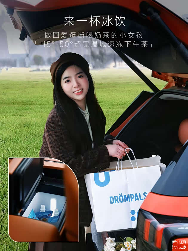 后备箱可轻松容纳折叠椅、麻将桌,公园野餐或露营说走就走;V2L外放电功能更让妈妈们随时煮一壶养生茶,或炖一锅当归鸡汤,成为广场舞姐妹们的“补给站天花板”。有车主笑称:“自从开了这车,我妈成了姐妹圈里的‘后勤部长’,人缘暴涨。”