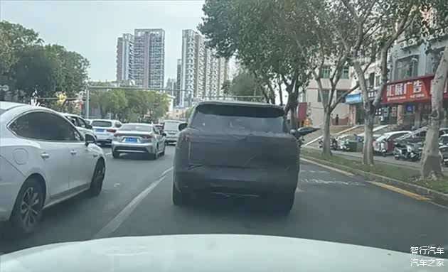 车尾部分,与腾势 N9 的相似度就更高了,透过伪装,可以看到新车采用的是细长的双层尾灯设计,中间是品牌 LOGO。