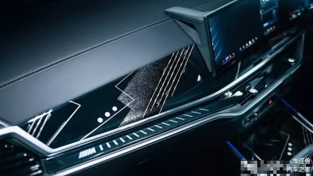 在内部装饰上,宝马X7特别版在其副仪表台的功能区域、杯架的盖板以及副驾驶侧的中控台上增添了激光雕刻的图案装饰板,并附带了BLACK-α的独特标志。这辆车还搭载了手工制作的染色纱线羊毛地垫,并配备了带有独特标志的车门接待灯。在基础设备上,宝马X7特别版继续搭载了一体式的悬浮曲面屏,由14.9英寸的中央触控显示屏和12.3英寸的数字仪表盘组成,屏幕微微向驾驶员倾斜。