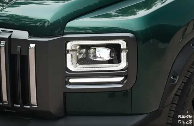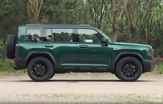 尽管燃油版延续了PHEV标志性的方盒子造型,但在细节上进行了差异化调整。比如前脸部分,PHEV版的圆形大灯被替换为方形灯组,就像丰田普拉多两个版本的差异,有方灯和圆灯可选,方灯看起来比圆灯更具科技感,搭配纵向排列的镀铬直瀑式进气格栅,车标尺寸缩小,整体视觉效果更显粗犷,就像新能源汽车回归到了燃油时代,更具原始气息。尾部则保留了外挂式备胎或小背包设计,备胎版本车长达到4800mm,侧面看起来也更大气。