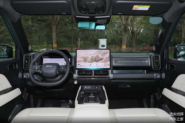 燃油版与PHEV版尺寸一致,轴距2738mm,后排腿部空间并不小,头部空间也要比传统的城市SUV更大,座椅支持27°-32°角度调节,车内有45处储物空间,包括一些有趣的设计,比如绑带式杯托、地图袋等,贴合越野需求。内饰保留大量实体按键,燃油版的怀挡设计释放了中控区域,搭配D型双幅方向盘,腿部空间更大。前排座椅通风/加热、400W后备箱电源接口等与PHEV版看齐,但取消了PHEV的W-HUD抬头显示。