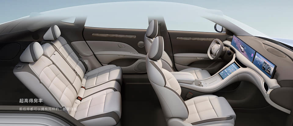 车内配超广角视野全幅方向盘,可选YAT巡航型半幅方向盘。主驾可选贝果舒压系统,副驾配太空座椅。主驾26.3英寸屏,副驾15.5英寸屏,中控10.5英寸屏。可进化辅助驾驶系统可选含城市NOA、代客泊车AVP、高速高架NOA的全功能包。