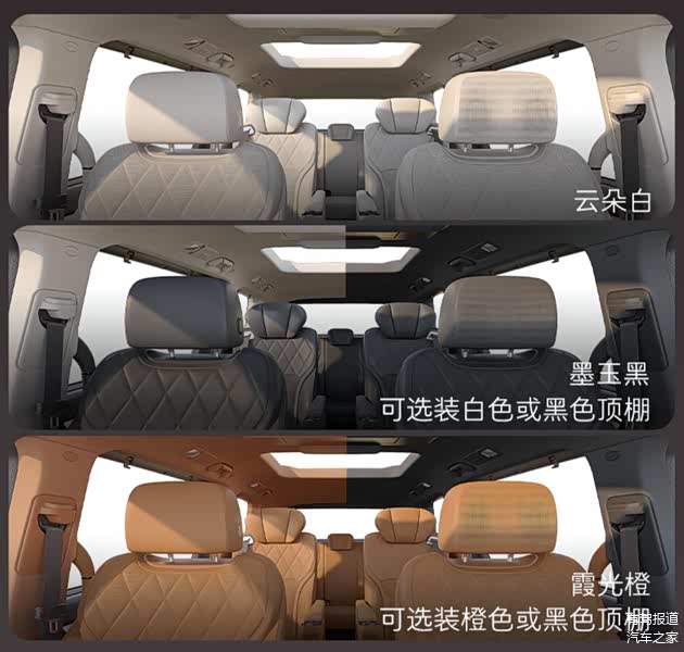 走进车内,新车将提供云朵白、墨玉黑、霞光橙三种纯色以及黑+白、黑+橙两种双拼配色。