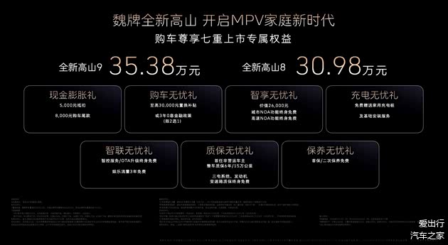 近日,魏牌品牌正式对外公布了旗下高山系列的两款新车型——高山8与高山9。其中,高山9可视为此前高山行政加长版的微调版本,而更为吸引市场目光的,无疑是全新推出的高山8车型。其车身尺寸精准定位在中大型高端商务MPV区间,恰到好处地填补了高山7与高山9之间的空白,标志着魏牌在高端MPV市场的布局更加完善,堪称品牌发展历程中的一大里程碑。