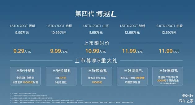 近日,吉利汽车正式对外宣告,第四代 博越L正式迈入市场。这款备受瞩目的车型,官方给出的指导价格起始于9.99万元,而且在特定时间内还推出了限时特惠活动,优惠后的价格低至9.29万元起,这一优惠举措将持续到2025年6月30日。第四代博越L不仅在外观造型和内饰设计上进行了全方位的革新,还配备了全新的中控显示屏以及Flyme Auto车机系统。凭借这些诚意满满的升级配置,它正以强劲的姿态冲击着紧凑型SUV市场。