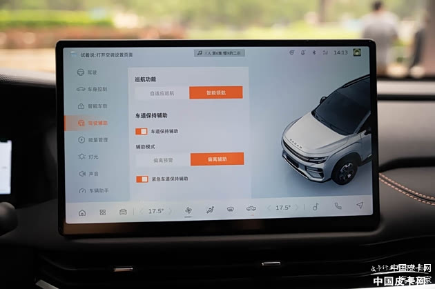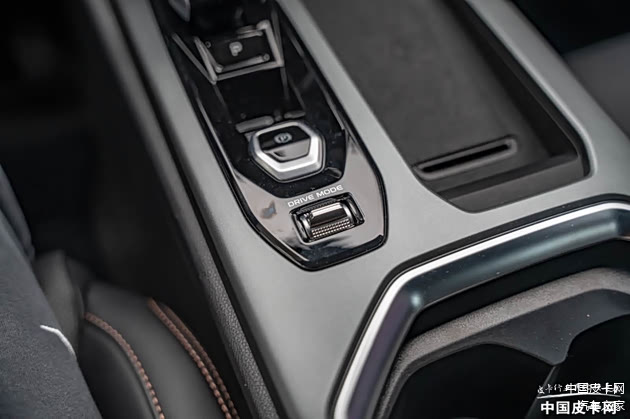 雷达PHEV展示车为顶配四驱版本,所以在驾驶模式上提供了经济、智能、运动三种公路模式,以及雪地、泥地、越野、沙地四种非铺装模式。模式切换可通过屏幕进行切换,也可通过中央通道上的模式拨杆快速切换。