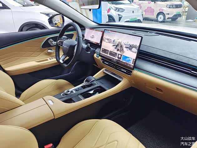 进入车内,艾瑞泽8 PRO 2.0T版本延续了1.6T版本的设计语言,但在细节处理和配置水平上或有提升。霞光棕内饰风格配合木纹饰板的点缀,营造出超越同级的高级感,而精心设计的氛围灯和门板上的座椅调节按键等细节,则进一步强化了座舱的豪华氛围。科技配置方面,新车搭载了15.6英寸2.5K高清中控屏和10.25英寸全液晶仪表盘的双大屏组合,并配备了行业领先的8155智能座舱芯片。