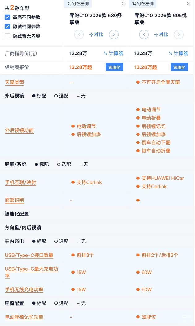 总的来说,2026款零跑C10这一次改款,依然延续了高性价比的路线,而且各个车型之前的配置差异也比较明显,即使是标配也并没有故意缩水,所以横向比较来看,它的竞争力还是很在线的。