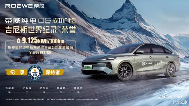 荣威纯电D6更以9.125kWh/100km的超低电耗,成功斩获“驾驶量产纯电轿车通过青藏公路能耗最低”吉尼斯世界纪录。每公里电费不到3分钱,相当于油车一箱油的费用就够荣威纯电D6行驶一整年,真正做到长续航、低能耗,让出行既省心又省钱!