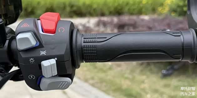 仪表方面采用彩色液晶仪表,各项数据显示齐全,工厂后续会提供TFT仪表及T-BOX进行选配,考虑到骑士驾驶,一体式手把并未做成大直把式样,而是将两侧手把位置向骑士做了内收,更符合驾驶习惯。