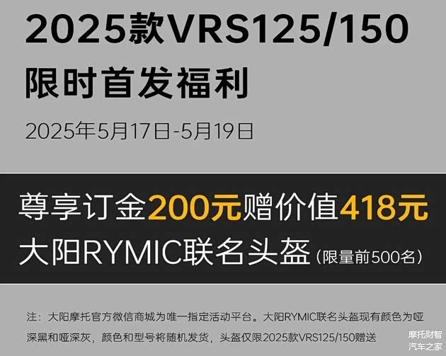 同样进行亮相的还有25款VRS125/150,限时首发福利,尊享订金200元赠送418元RYMIC联名头盔。