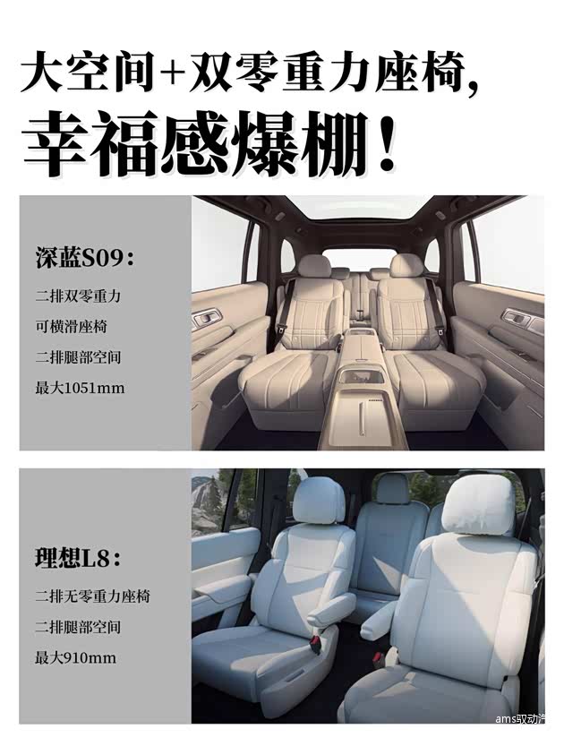 22年9月登场的 理想L8凭借“三排六座+增程”的组合赢得了不少家庭用户的关注,但随着市场逐渐发展不少后来者带来了更耀眼的表现,比如新晋亮相的深蓝S09,凭借其“全能大六座智慧旗舰SUV”定位,成为争夺85后用户的有力竞争者。深蓝S09和理想L8两款车型虽然都是大六座,但在定位,空间布局、智能配置、驾乘体验及安全都存在显著差异。谁才是细分市场的更优解,我们不妨就来对比一番。