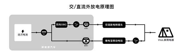 反过来的对外放电同样如此。我们日常使用的家用电器都是220V交流电,车辆动力电池为高压直流电,无法直接外放使用,这中间必须有一个DC→AC的逆变环节。如果车辆的OBC同时支持电能的双向流动,我们称之为「双向OBC」,搭载双向OBC功能的车型可以使用市面上最便宜常见的交流放电枪实现外放电,因为所有的逆变环节已经在车内实现,交流放电枪仅仅是起到接口转换的作用;如果车辆的OBC仅为单向甚至没有OBC,那么想要实现外放电,则需要使用「唯电宝2mini」、「唯电宝2代」这样的直流口放电枪,先将车辆电池的电取出,再在唯电宝机身内部进行逆变,最终从机身上的插座放出220V交流电。