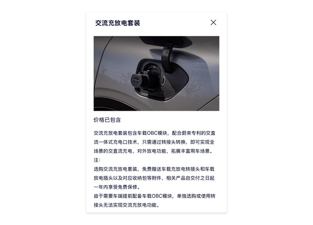 除此之外,还有一项功能同样是在ET9首搭,那就是“交流充放电套装”。众所周知,从2022年上市的蔚来ES7开始,蔚来后续的全系车型均取消了车载充电机(OBC),车辆仅提供直流口,不管是充电还是外放电,都需要使用相应的直流充电枪/放电枪,常规的交流充电枪/放电枪均无法使用,该策略近几年来一直备受争议。如今新ES6/EC6将交流口功能回归,对消费者而言到底有什么变化?准车主是否需要用上这项功能呢?
