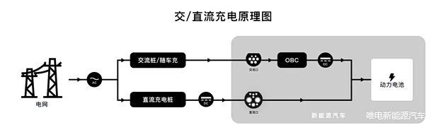 电网运输到家庭、充电桩的电为AC交流电,而动力电池驱动车辆使用的是DC直流电,所以在车辆充电这个环节,一定避免不了AC→DC的整流。市面上最常见的快充超充站,是将电网输送的交流电提前在硕大的直流充电桩上完成整流,9孔快充枪充进车辆直接就是直流电的输送;如果是交流慢充桩,是将电网输送的交流电通过7孔慢充枪充进车辆,通过开篇一直提及的「OBC」,在车内实现整流。受制于体积、散热等多重因素,想要在车内做AC→DC的,铁定是不如在车外做“放得开”的,这也是为什么直流快充的速度远比交流慢充要快。