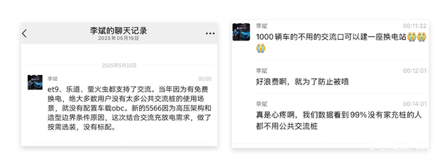 首先是成本控制。取消交流口就可省去车载充电机(OBC),每辆车能降低约2000元的成本,按照年销10万台来计算,每年就能节省超2亿元。李斌曾明确表示,“1000辆车不用的交流口节省的成本,可建设一座换电站”。其次,OBC本身会占据较大的重量及体积,省去约15-20kg的重量对于当下新能源汽车来说能带来更好的续航和能效,释放出的车内空间还能用于其他硬件的布局。最重要的是,从蔚来后台数据来看,99%没有交流家充桩的车主从未使用过公共的交流慢充桩,即便是是有交流家充桩的用户,在外公共交流慢充使用率也低于1%。交流口在用户实际补能场景中已沦为低频功能,是非常大的资源浪费风险,作为易损件,其售后成本支出也一直居高不下。