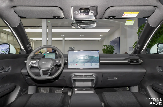 比亚迪e7内饰属于简约,实用的风格,中控台有着不错的层次感,全液晶仪表的尺寸为5英寸,中控屏幕的尺寸为10.1英寸和15.6英寸,方向盘采用塑料材质,座椅采用皮质包裹,换挡机构采用怀挡式。
