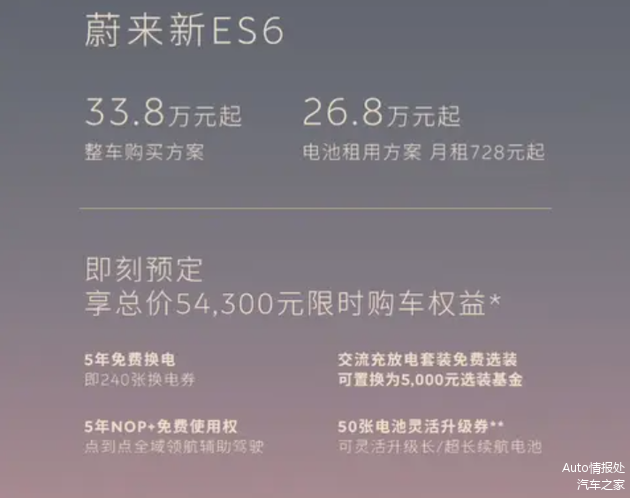 日前,Auto情报处从蔚来汽车官方处获悉,2025款 蔚来ES6正式上市,蔚来ES6定位纯电中型SUV,2025款共推出2款配置车型,指导价为33.8万元和39.6万元,租用电池26.8万元起,相比老款车型,续航里程有调整,配置也得到升级。
