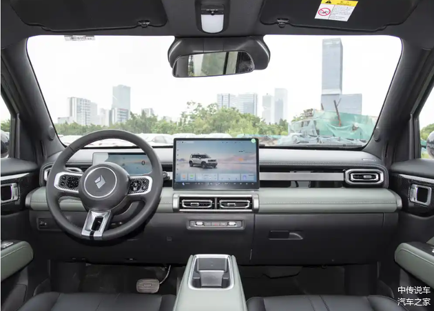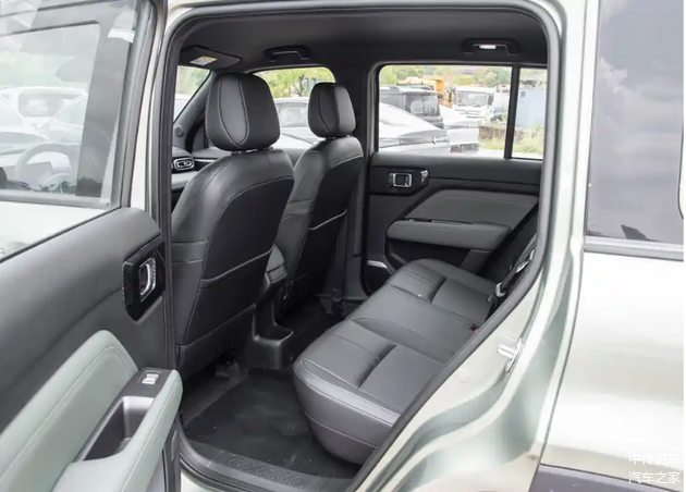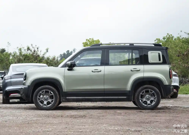 侧面造型方面,新车车顶线条平直,搭配粗壮的行李架,展现出强烈的越野气息。贯穿式腰线点缀出车身侧面的层次感,悬浮式车顶设计则是当下流行的元素。轮眉和侧裙部分的粗壮黑色饰板进一步增强了力量感,而熏黑的轮毂造型简洁,与整车风格相得益彰。