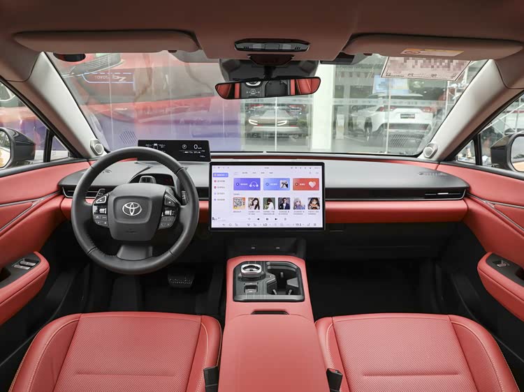 内饰部分,丰田bZ5选择了走简约化设计风格,空调出风口采用贯穿式设计,中控台配备了液晶仪表以及一块大尺寸悬浮中控屏,科技感十足。同时,配备九个安全气囊,侧气帘从A柱延伸至C柱,以及主副驾驶之间。
