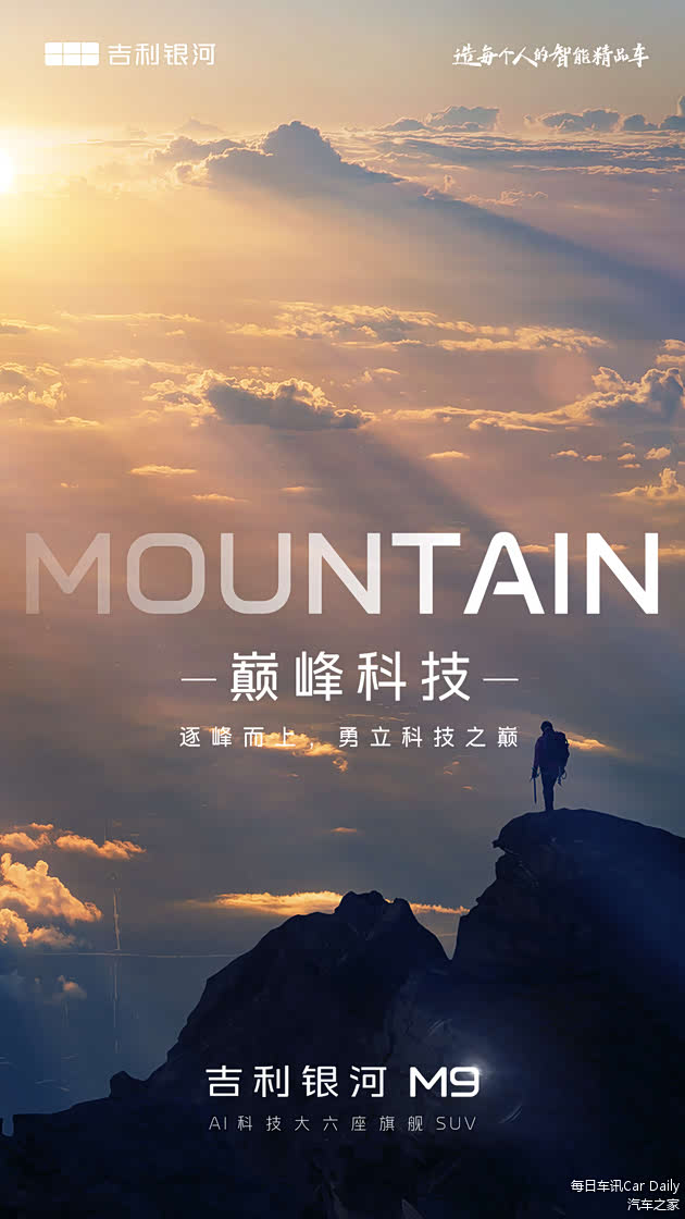 “M9”中的“M”寓意深远,代表Master(大师品质)、Mountain(巅峰科技)、Moment(为用户创造美好时光),体现其旗舰身份和产品格局。作为吉利银河产品序列的高端之作,M9将集成吉利集团在电动化与智能化方向的最新成果。