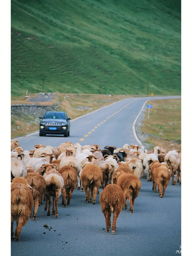 转场羊群:熄火等待(牧民索赔标准:成年羊≥1500元/只)。