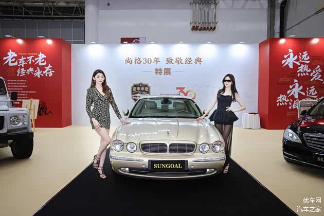 正值主办方尚格会展创立30年,本届车展特别策划「老车不老——尚格30年 致敬经典」特展。法拉利California、路虎卫士90、奔驰S600(W221)、捷豹XJ8、捷豹S-TYPE、捷豹XKR、捷豹XJL、宝马760Li(E66)、宝马740iL(E38),9台跨越时代的典藏座驾齐聚一堂,不少人前来一探究竟,“行走的老车文化博物馆”在现场具象化了。