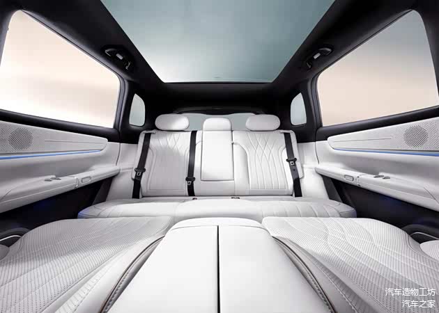 后排座椅可与后备厢衔接连通,形成2.55m×1.45m 的大床,集休憩、娱乐与储物功能于一体,为全家人出行创造了多样化生活场景。