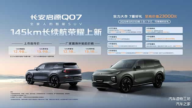 值得一提的是,对于已经下订长安启源Q07 145豪华型和145尊贵型车型的用户,长安启源同样提供免费升级的服务。