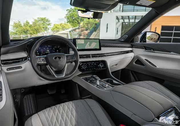 内饰方面,2026款英菲尼迪QX60同样迎来了重大更新。新车采用了黑白风格的全新配色方案,并在中控台区域引入了仿碳纤维装饰纹理,既增加了内饰的层次感,又不失豪华气息。车内配置方面,配备了12.3英寸的仪表屏和中控屏,内置谷歌地图等实用功能。音响系统也得到了提升,最多可提供20个扬声器,为驾乘者带来沉浸式的听觉享受。