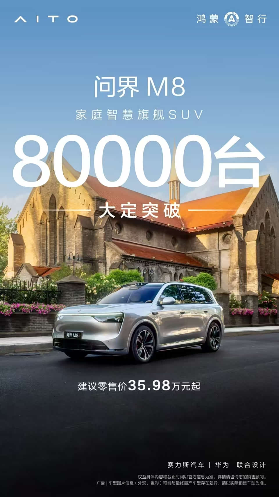 问界M8的预定实在有点猛,大定已经突破80000辆了,这个成绩大家觉得怎么样?