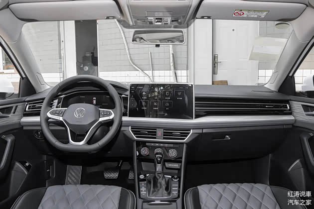速腾的中控台偏向驾驶者一侧,刚开始看着有点别扭,但接触时间长了就会感觉这种设计还可以,各种功能操作起来触手可及,皮质多功能方向盘大小适中,握感舒服,只是车机系统存在反应慢、卡顿现象,屏幕影像清晰度也一般,但基础功能显示没什么问题。