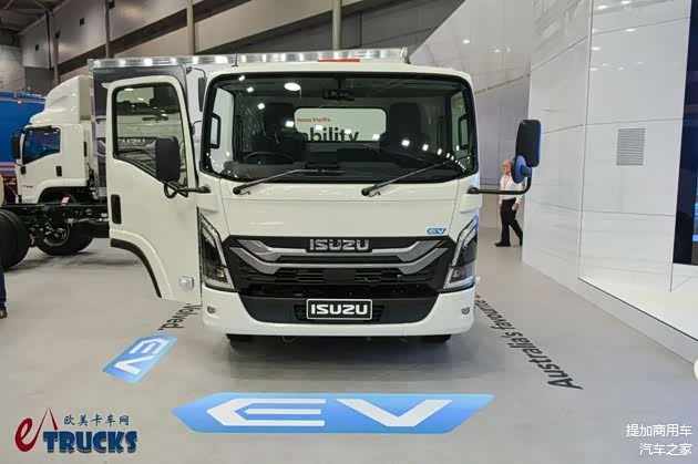 除柴油版车型外,五十铃还在现场展出了ELF EV纯电动轻卡。根据配置不同,ELF EV可选44kWh、66kWh、110kWh等电池规格,电机则分为110kW、370Nm及150kW、370Nm两种,主要用于城市配送、市政垃圾回收等用途。