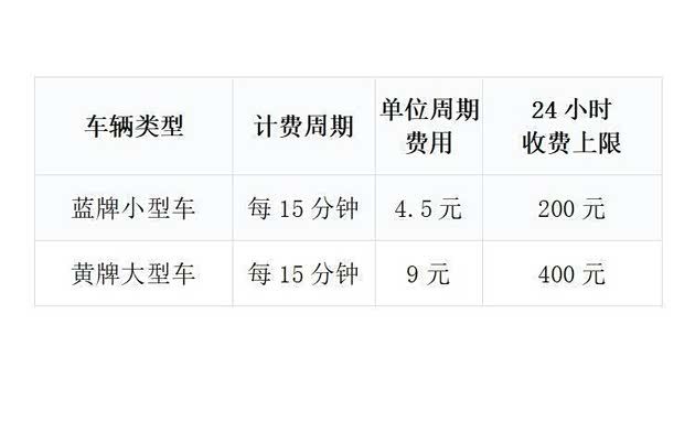 蓝牌小型汽车的停车收费标准如下:其计费以15分钟为一个时段单位,每个时段收取4.5元停车费用。在24小时(一个自然日)的完整计费时段内,停车费用设有最高限额,即每日累计停车费用不超过200元。