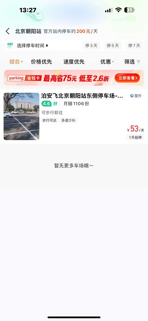 带家中长辈出游,最怕旅途奔波让老人受累。当下,很多家庭会选择自驾前往北京朝阳站,这无疑是贴心之选。想想看,坐地铁换乘时人潮拥挤,老人身体吃不消;乘公交一路颠簸,老人坐着难受;打出租车又担心司机绕路多收费,平添经济负担。而自驾则大不一样,行李轻松放上车,老人安稳坐在后排,出行时间、地点全由自家决定,这种自在谁能拒绝?不过,北京朝阳站的高昂停车费常让家庭犯难。别愁啦,今天就给大家支个“省钱招”!去朝阳站周边的优质停车场停车,微信搜索小强停车,即可轻松预约周边的停车场,且输入邀请码“58”,还可领取38元停车抵扣券。每天停车费只需53元。自驾带老人出游,要的就是省心省钱又舒适,现在停车问题解决了,赶紧预约,让老人轻松出发、快乐返程!