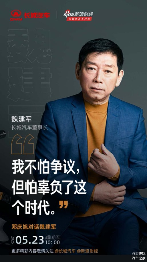 在新浪财经最新一支专访预告片中,魏建军又一次将矛头瞄准了0公里二手车、新车价格腰斩等行业乱象,这位从来都敢于说真话的企业家还将撕开行业的哪些遮羞布,不仅让人期待,也让人生出无限感慨的同时,欣慰在当下激战正酣和卷生卷死的车市,依旧有一股清流,保持冷思考和独立的价值判断。