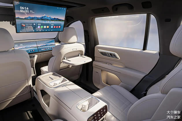 这款车的内部设计采纳了2+2+2的六座布局,所有座椅都是电动调节的。除了入门级车型,其他车型的前排和二排座椅都配备了加热、通风和按摩功能,而第三排座椅则配备了加热功能。此外,车内还有一个21.4英寸的3K后排娱乐屏。