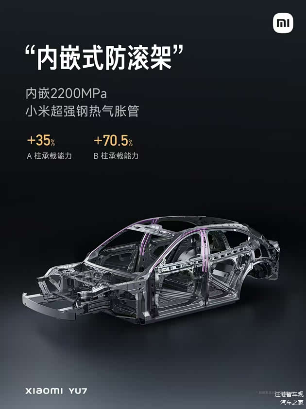 另外它也被用在了AB柱内从而形式了一个内嵌式的防滚架结构,安全方面,小米汽车还是做出了更多努力。