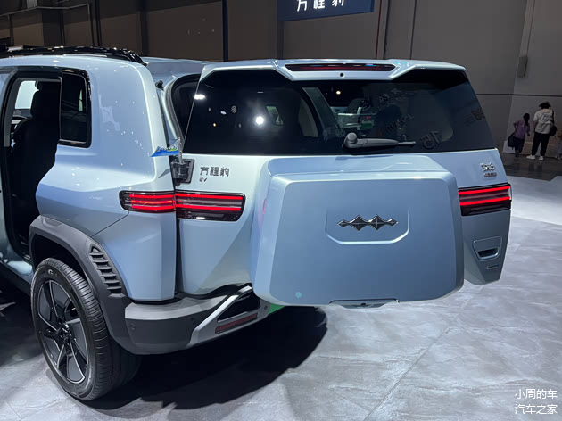 侧面车门下方也是配有黑色的包围,搭配隐藏式门把手以及黑色的行李架,狂野中又带有几分时尚气息。尾部有着外挂的方形“小书包”,它并非备胎罩,而是一个小型的储物空间,乍一看上去颇有些突兀,在尾窗的上方,该车还配有扰流板,下部的保险杠则是与车头类似,起到前后呼应作用。值得一提的是,钛3的尾门为侧面开启,可以方便装卸大件物品。